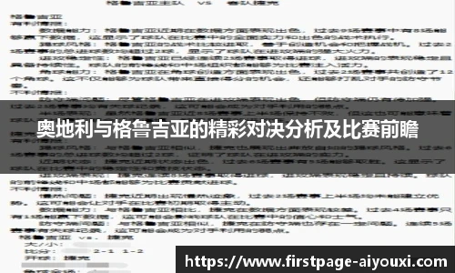 奥地利与格鲁吉亚的精彩对决分析及比赛前瞻